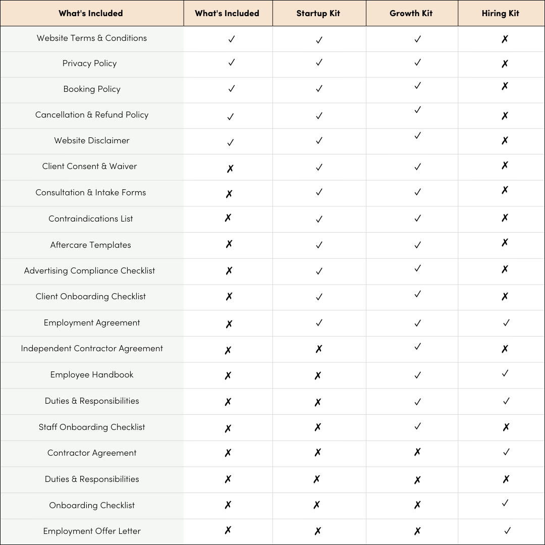 Shop the legal bundles built for Skin Clinics